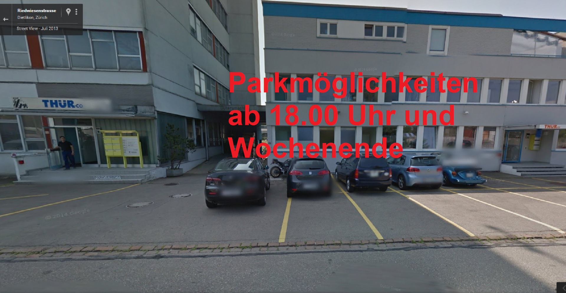 Die gemeinde Dietlikon hat auch im Industriegebiet Aegert die blaue Zone eingeführt. Wir empfehlen dringen die nachfolgenden Parkplatzmöglichkeiten zu verwenden. Alternativ kann für die blaue Zone bei der Gemeinde Dietlikon eine „Besucher-Tageskarte“ On-line für (aktuell) CHF 8.00 für 24h HIER gelöst werden. Zahlbar mit Credit-Card oder TWINT (einfach den Anweisungen folgen, TWINT Möglichkeit erscheint erst bei der letzten Seite).
